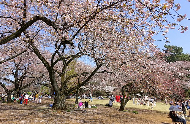 We’ve talked about this park at length. Located just to the east of the bustling Shinjuku district and station of the same name, these imperial gardens, once meant for royalty, were completed in 1906 and destroyed in 1945, during the later stages of World War II. Now under the auspices of the National Environment Ministry, the public can enjoy hanami in style.