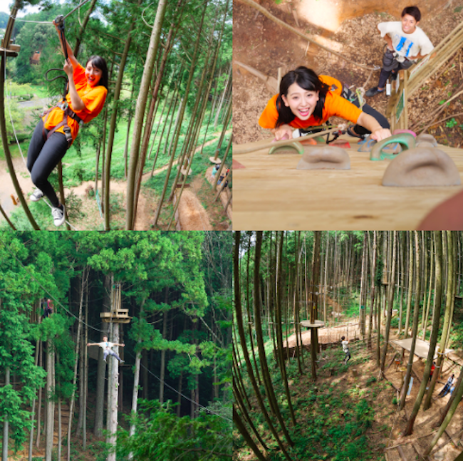 Covering some 8,000 square meters of the park, Forest Adventure Shinshiro challenges visitors to navigate gang-walks and wires high into the tree line. With a total of 39 activities spread across five courses, it is one of only 25 facilities of its kind in the country, and the only one in Aichi.
