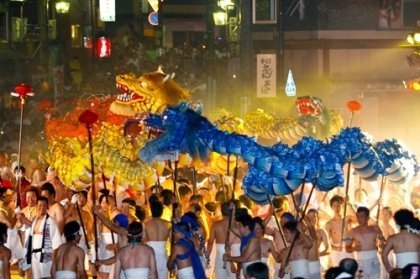 According to the Gero legend of “Wankasebuchi,” on the first day of the festival five dragons make their way through the city. The highlight of the event is when these dragons perform original dances, whirling about amongst sparks of fire on the Shirasagi Bridge.