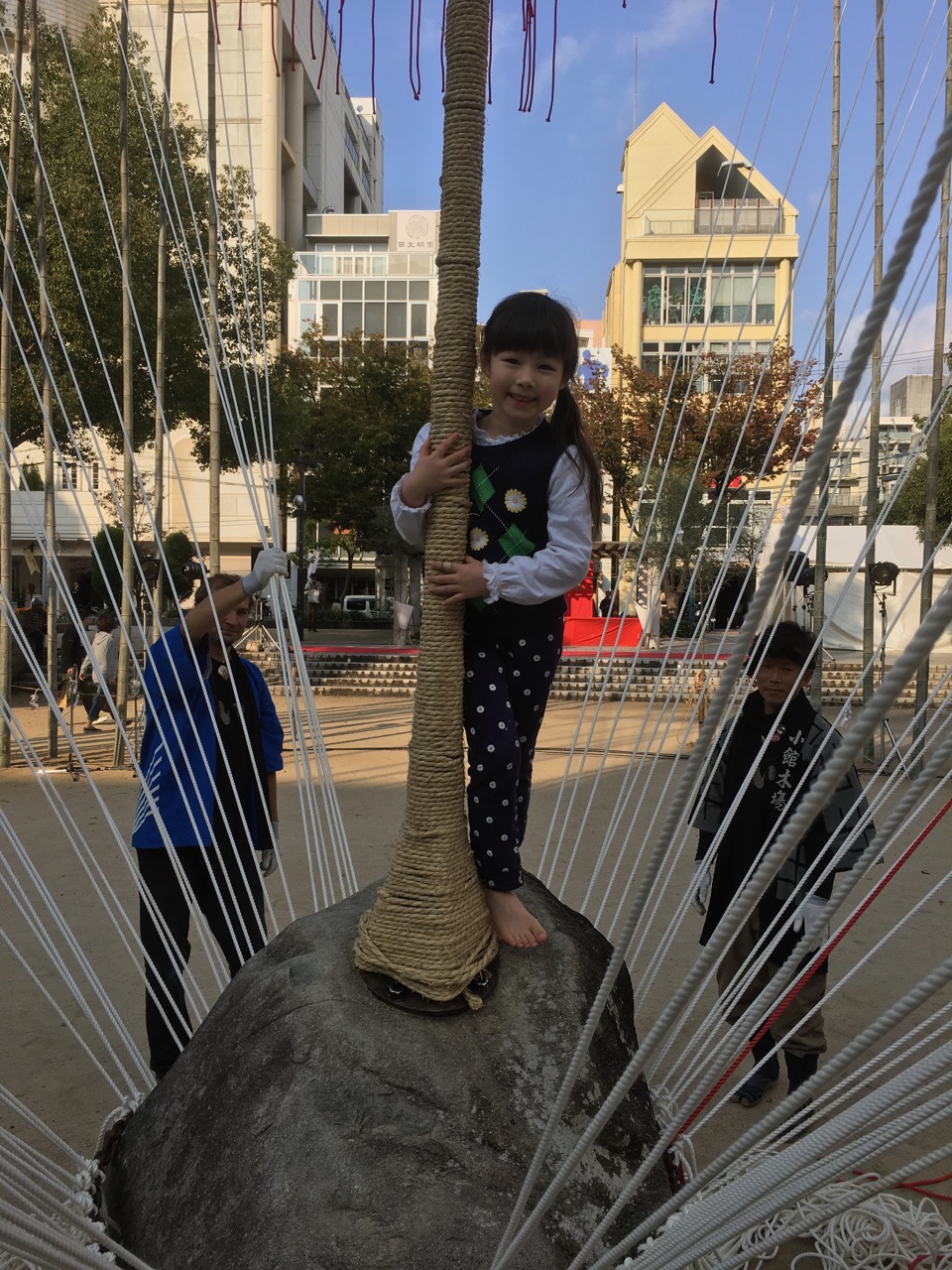 On Saturday, November 4, a children’s Inoko parade will kick things off from 11:00 a.m., moving through Hondori and Kinzagai. At 3:00 p.m., kids and parents are invited to lend a hand at the first raising and dropping of the stone. They can even pose for pictures atop the thing — that’s my own daughter at the top of this article. Children also have the chance to try their hand at making traditional bamboo toys like dragonflies and flutes or roasting marshmallows on bamboo skewers.