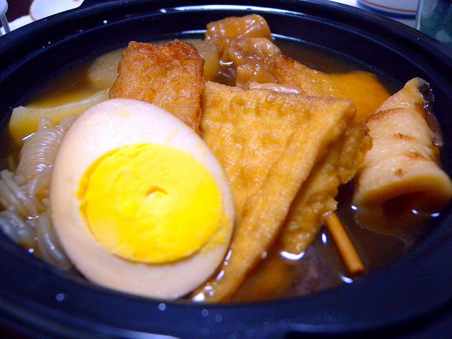 Another warming dish, oden (in the main picture above) is a huge winter favourite. You may have noticed it in the convenience stores in the big wooden pots near the cashier. If you are anything like me, then you will have noticed the smell before you saw it and been a little revolted (the strong fishy scent is a turn off for me), but ask any Japanese, the conbini oden is not a patch on the real stuff. Often sold by street vendors this dish features a variety of ingredients, such as egg, tofu, konnyaku yam cake, daikon radish, and chikawa fishcake which are stewed for hours in a soy sauce based broth.