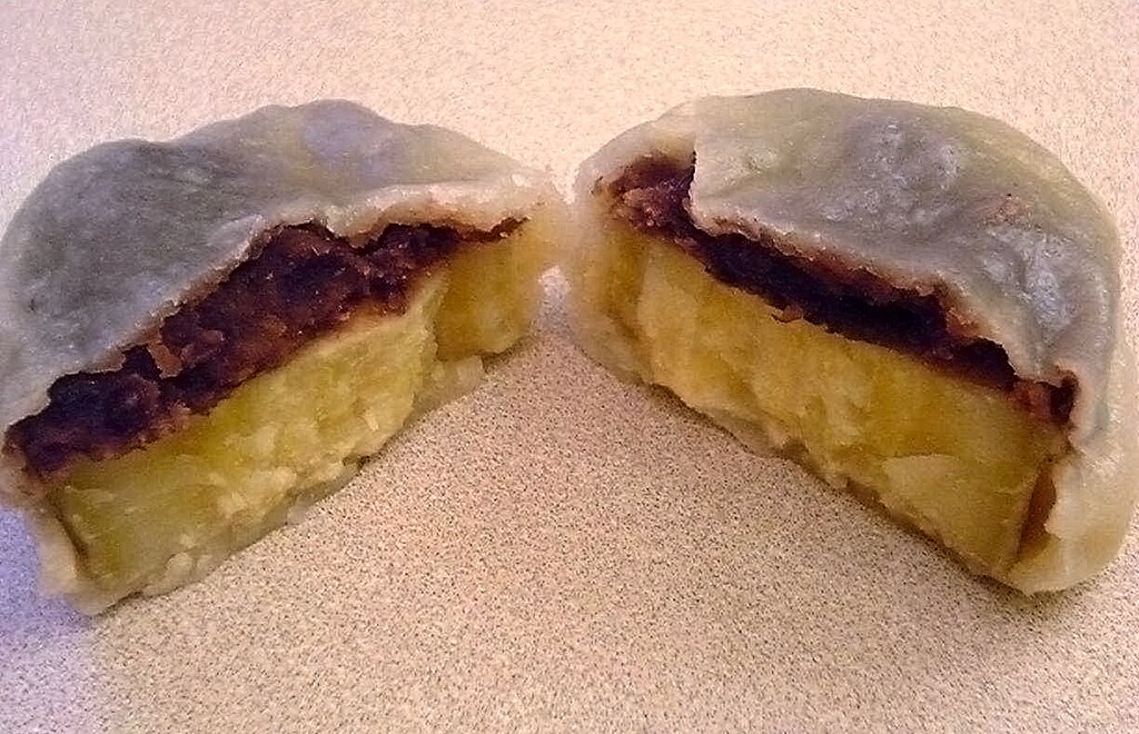 This is a signature Kumamoto sweet dish. It’s a mochi rice cake with a sweet potato and red bean paste filling. With a name translated as “suddenly cake,” it’s easy to make and often whipped up by families who have guests at short notice. You can buy them hot or cold from street food vendors in Kumamoto and pre-wrapped at souvenir stores. Other filling flavors, such as walnut and white bean paste, are also available.