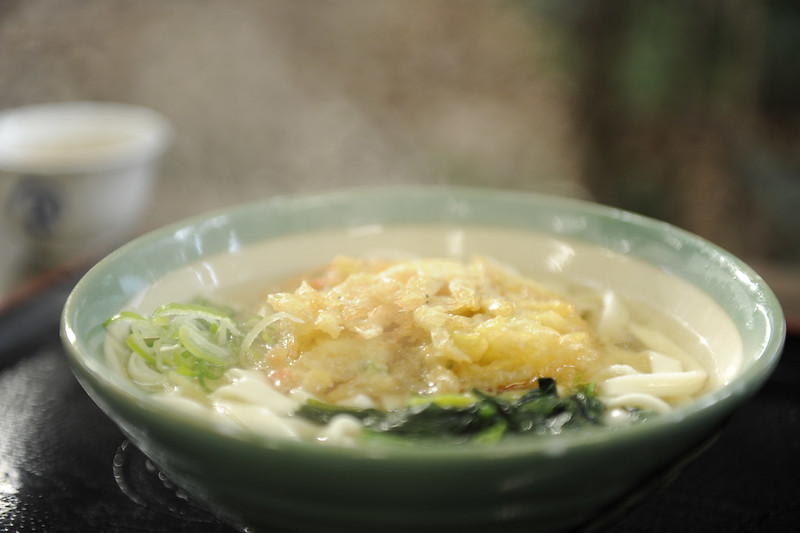 Highly recommended is the Tenoroshi Kishimen, cold noodles served in a dashi and soy sauce broth topped with grated radish, seaweed, and a mix of sweet potato and prawn tempura.