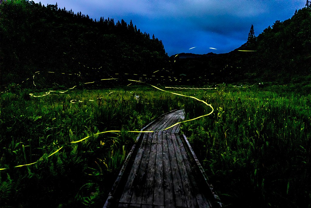 If you go to where the fireflies live naturally, though, they are often around for several weeks. In Kansai, they’re active from late May to mid-June. Although they start coming out at nightfall, you may need to wait until 10:00 p.m. or even midnight to see them in large numbers. You’ll see the most fireflies of all if you search far from artificial light, near water sources, and in thick forests.