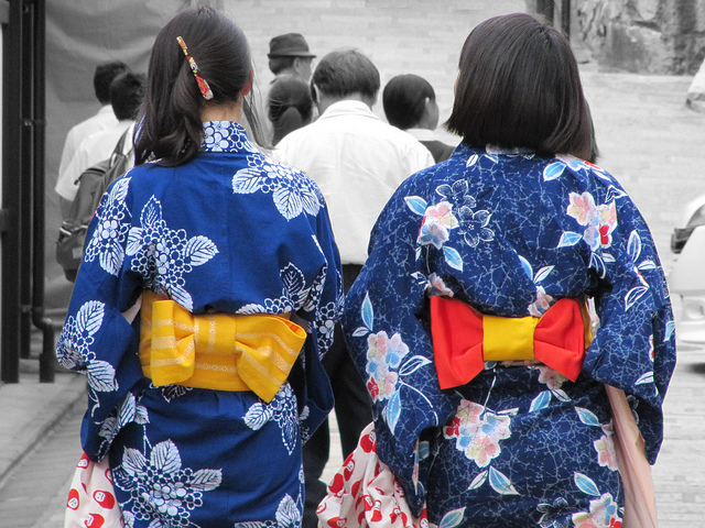 Photo: flickr.com “Kimonos y yukatas en Kioto.” by Lorena a.k.a. Loretahur (CC BY-SA 2.0) -Modified