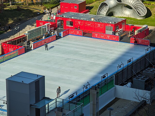 This is a new option. The Ginza Six shopping mall roof has been converted into a small ice rink. The nice thing about this rink is easily the rooftop views of Ginza and the Tokyo skyline. The rink is made of resin and offers seats to take breaks. The admission is 2,000 yen for adults and 1,500 for children. Note that gloves are required but can be purchased for an additional 500 yen.