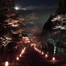 The Kyoto Higashiyama Hanatouro takes place annually in March. The festival features the “Light and Blossoms Pathway,” with approximately 2500 lanterns decorating the 5 km walking path that leads into the foothills of Higashiyama Mountain through Shoren-in Temple and Maruyama Park, and then through Yasaka Shrine to Kiyomizu-dera Temple.
