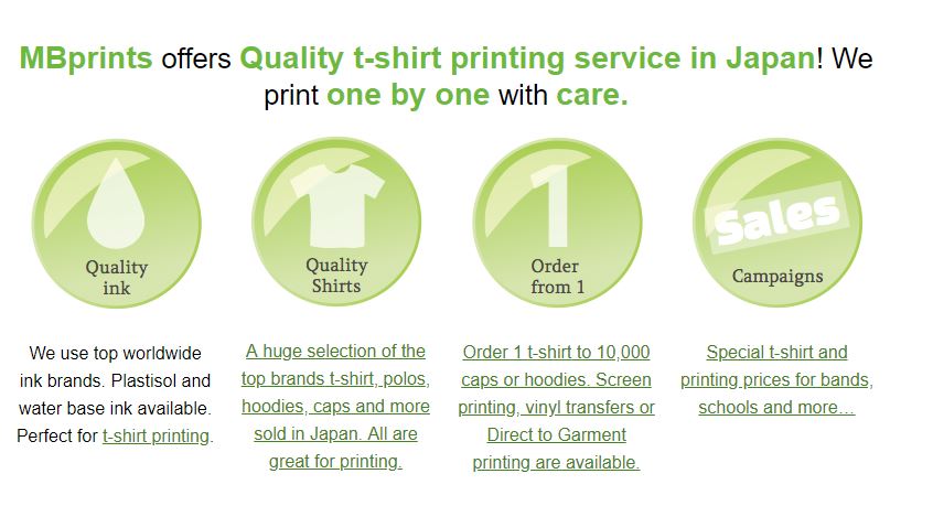 MBprints is a full service textile t-shirt print shop located in Japan which specializes in garment printing using the highest quality inks, t-shirts and supplies. Custom and/or original printed silk screen t-shirts, polos, hoodies (pull-over, parka), jackets, bags and many other printable items delivered right to your door, with full English support.