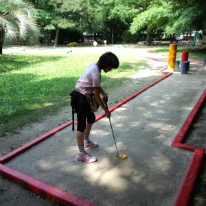 Tsurumai Park Mini GolfYou can play mini golf, “putt putt” or “baby golf,” in Japanese, at Tsurumai Park Baby Golf at Tsuruma Park near Tsurumai Station!  This is a great way to kill a couple of hours with the family within the city, and it costs less than any drinks and snacks you might buy at the convenience store to go along with your outing!  A couple of hundred yen per round on this 9 hole hole course.
