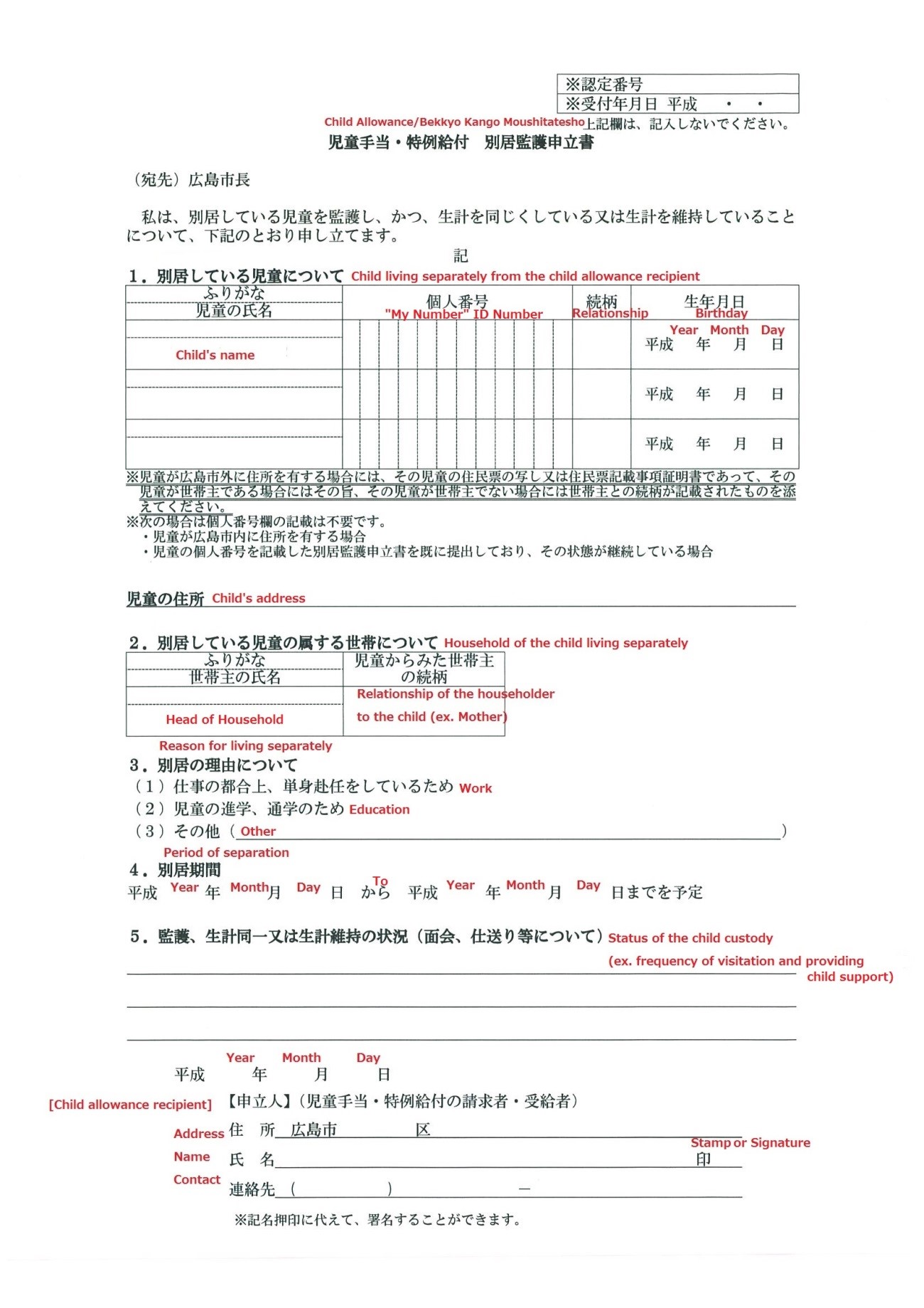 *Forms of Genkyo Todoke vary from area to area, and the Separate custody petition might be in Genkyo Todoke or a separate sheet.
