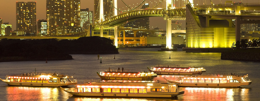 Most ships leave from Hinode Piers near Hamamatsucho Station on the JR Yamanote Line unless otherwise stated. All will require a ticket that can either be purchased online, at a convenience store, or in some cases at the terminal.