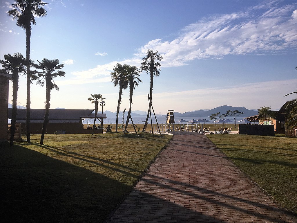 This golden sandy beach south of Kami-Kamagari is among Japan’s top 100 beaches. It stretches out for 400 meters and is packed in the summer months with bathers dipping in the Seto Inland Sea or participating in one of the activities on offer. You can try a spot of sea kayaking, stand-up paddling (SUP), or even tennis if you fancy something more than relaxing on your back in the ocean. The beach is part of a complex that includes restaurants, cottage accommodation, spas, a hillside observatory, and even salt-making classes. All of which makes it an excellent choice for a long weekend break – but book early!
