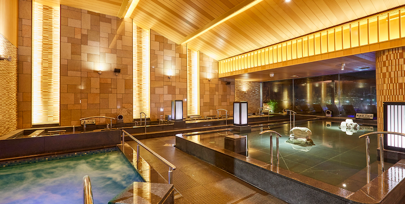 There are thirty different baths, including a medicinal bath, a bath made of cypress wood, and a bubble bath. You can also enjoy eight different saunas, take your pick from 12,000 manga, and there are plenty of games for your kids to play with.