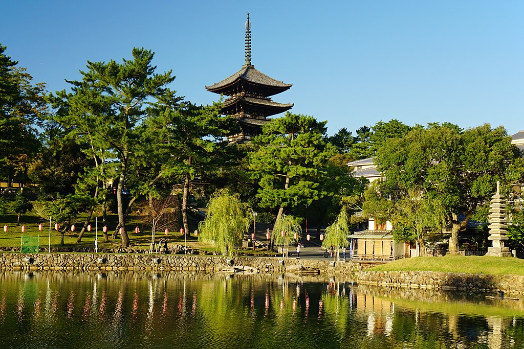 There are numerous things to do and see in Nara City, but the most important attraction has to be Nara Park. Located at the foot of Mount Wakakusa, it became a public park in 1880, which makes it one of the oldest parks in the country. It has the title of “Place of Scenic Beauty” and is home to sika deer — a national treasure and an unofficial symbol of Nara.